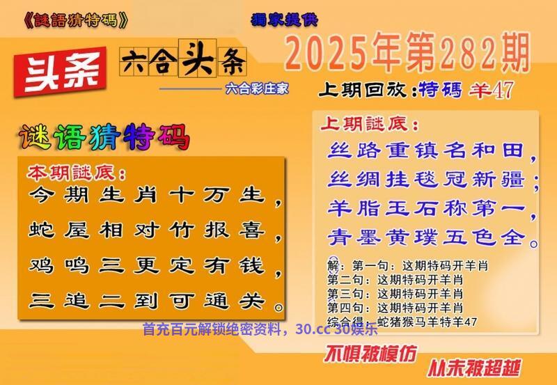 280期 春风桃李又开花 六合出码指财路 金牛出门财时来 十二生肖本领强 解译:春风桃李又开花指春肖兔虎龙,金牛出门财时来指明肖牛,金肖猴鸡 九肖:兔虎龙牛猴鸡猪狗鼠 |